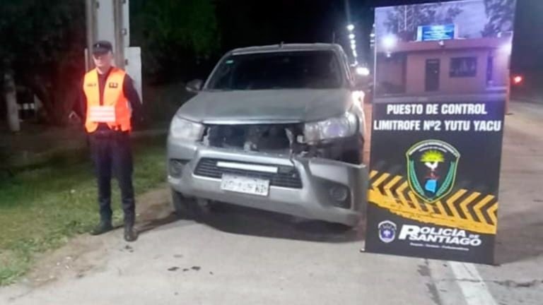 La camioneta involucrada se retiró del lugar luego del choque. Con la información aportada por el motociclista, personal del puesto de control de Yutu Yacu logró interceptar, cerca de las 21hs, una camioneta Toyota Hilux gris con daños en la parte fron