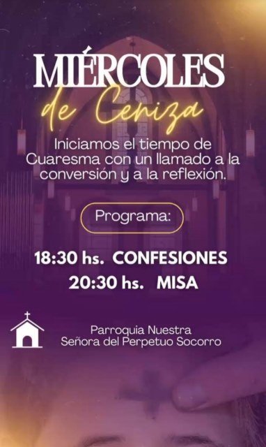 Posteriormente, a las 20:30 horas se celebrará la Santa Misa, en la que se realizará el rito de la imposición de cenizas y se invitará a la comunidad a vivir la Cuaresma como un tiempo de conversión personal y compromiso solidario.